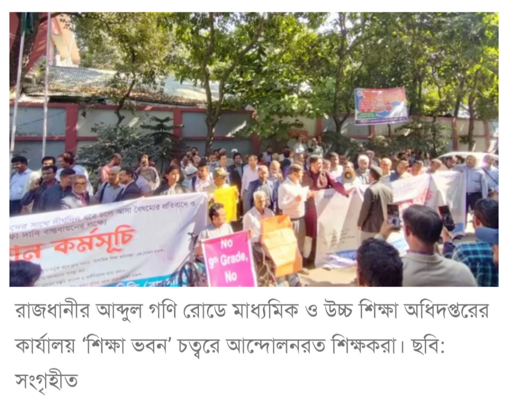 বাংলাদেশ সরকারি মাধ্যমিক শিক্ষক সমিতি সাবেক সাধারণ সম্পাদক শাহাব উদ্দিন মাহমুদ সালমী বলেছেন, ‘আমরা চাই ‘সহকারী শিক্ষক’ পদটি নবম গ্রেডে বিসিএস সাধারণ শিক্ষা ক্যাডারভুক্ত করে দ্রুত সময়ে মাধ্যমিক শিক্ষা অধিদপ্তর গঠন করে গ্রেজেট প্রকাশ হোক। এ অধিদপ্তর গঠন করে শিক্ষকদের পদগুলো ক্যাডারভুক্ত করলে আমরা অন্যান্য প্রশাসনিক পদে পদান্নতির সুযোগ পাব।’বৃহস্পতিবার (২৭ নভেম্বর) সকাল রাজধানীর আব্দুল গণি রোডে মাধ্যমিক ও উচ্চ শিক্ষা অধিদপ্তরের কার্যালয় ‘শিক্ষা ভবন’ চত্বরে থেকেই দেশের বিভিন্ন সরকারি বিদ্যালয়ের শিক্ষকরা ‘সরকারি মাধ্যমিক শিক্ষক সমিতি’র ব্যানারে বিক্ষোভে অংশ নেন।